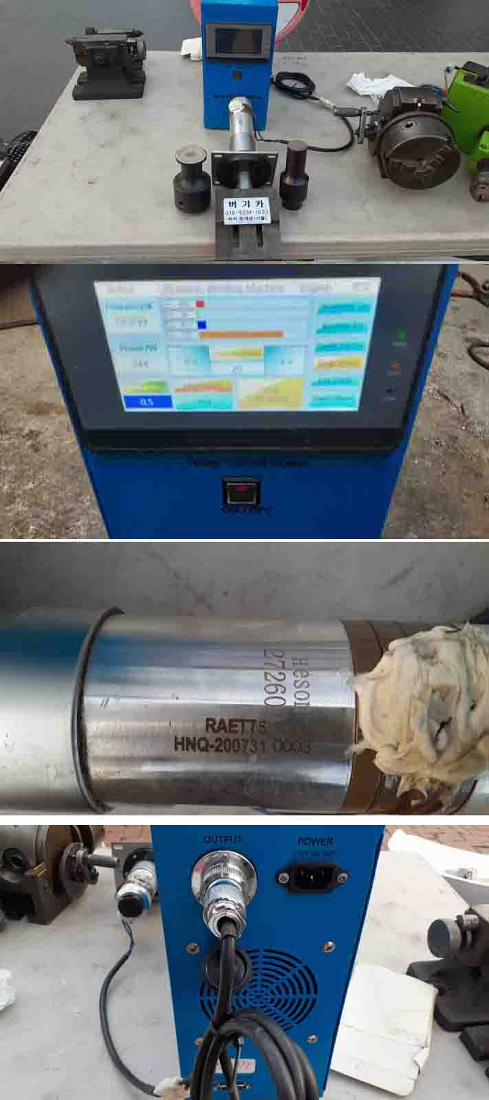 가격인하 RAETTS ASSAN 400W 초음파 융착기 입니다 동작이나 외관 양호 합니다 헤드 지그 3개 대.중.소.사진과같이 그대로 있읍니다 테스트체크 완료 디스플레이메뉴얼은 3개국 중국 영국 터기로 되여 있읍니다 입력전압:AC 220/출력:400W 입니다 주파수:20.3-19.5khz 사진그대로 실사 입니다