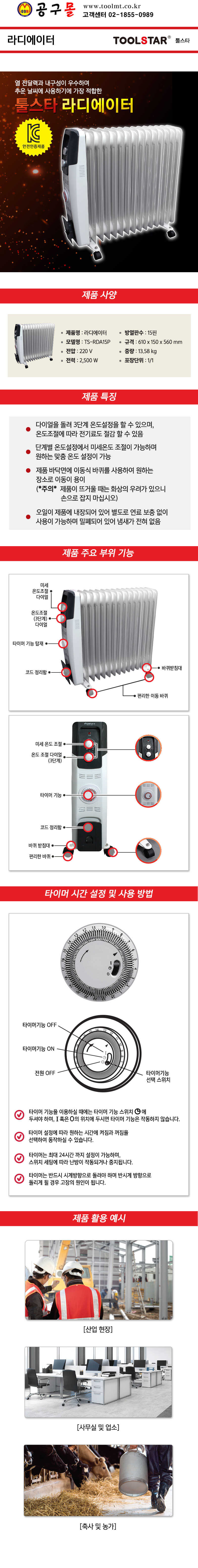 품절.라디에이터 TS-RDA15P (TSRDA15P) 툴스타,TOOLSTAR