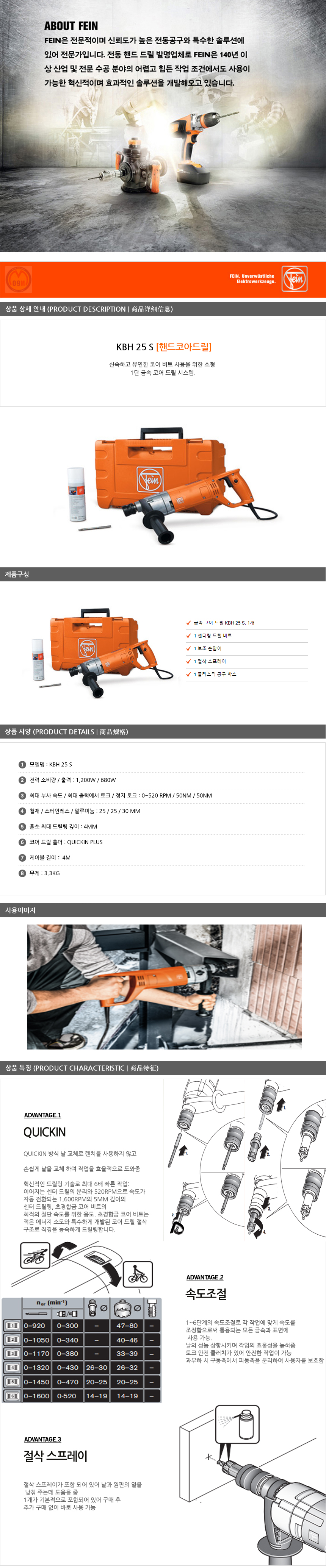 파인 핸드코어드릴 KBE25S, 마그드릴, FEIN, 코아드릴 , 천공작업, 핸드드릴