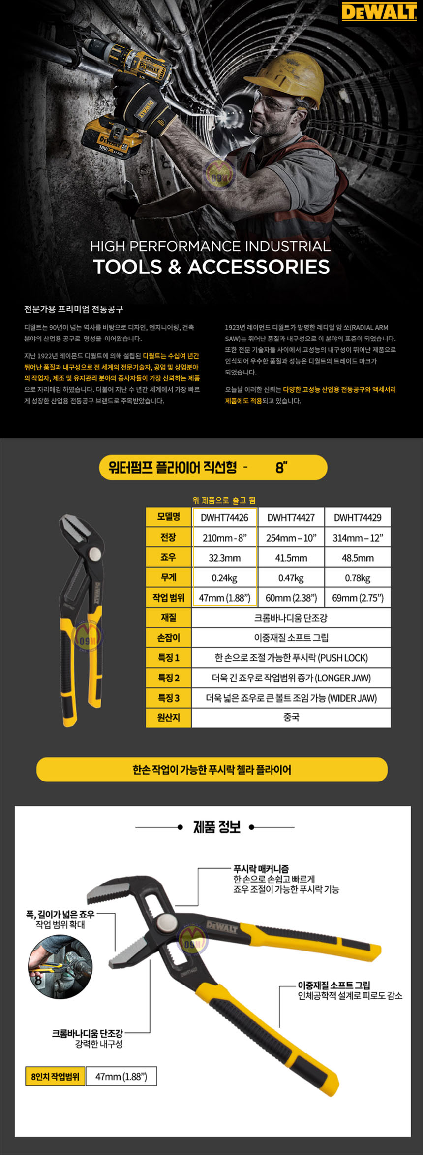디월트 첼라 DWHT74426 (200MM), 워터펌프 플라이어, 플라이어, DWHT