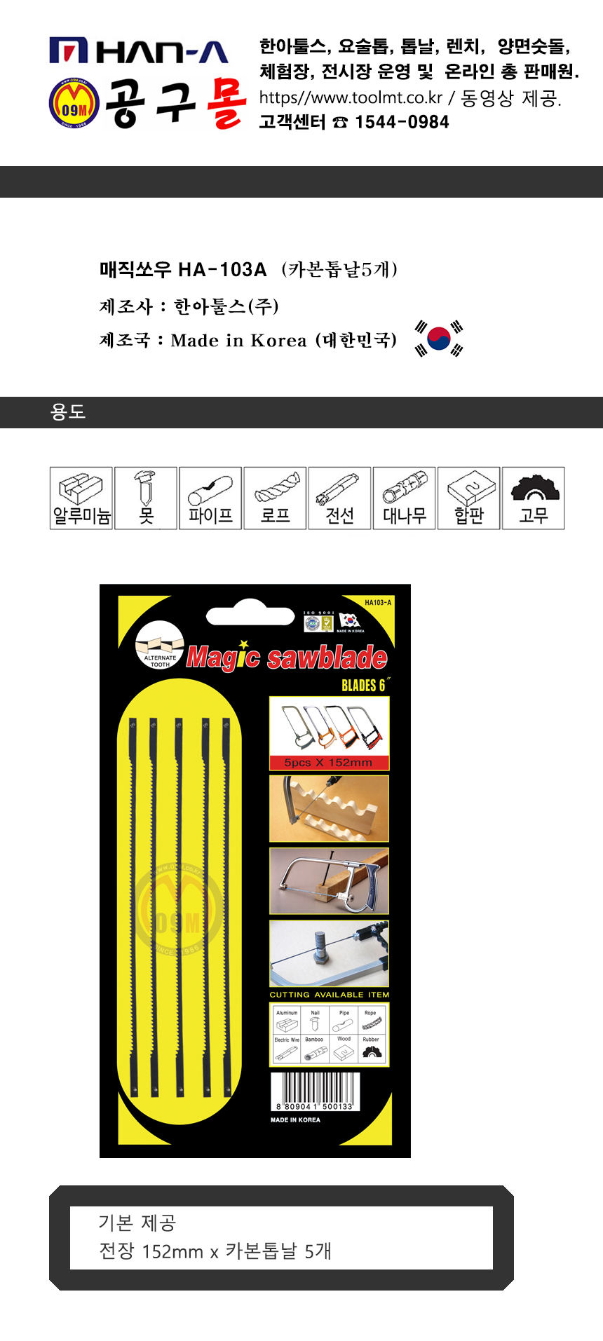 매직쏘우 HA-103A (카본톱날5개) 한아툴스, 요술톱, HA103A