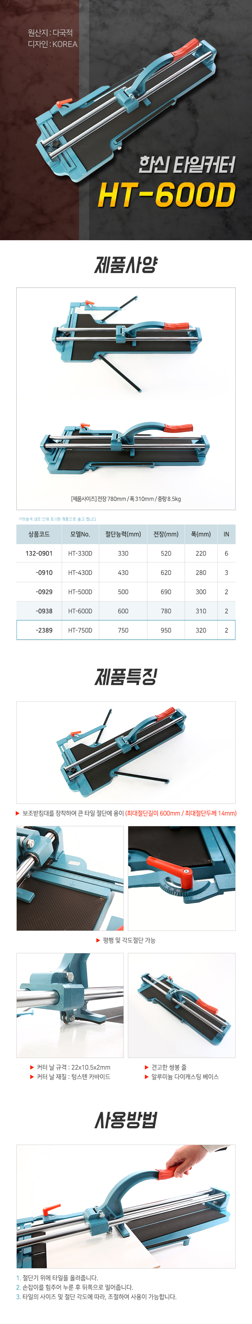 한신 타일커터(AL) HT-500AL 쌍날 (경량용) , 타일캇타,타일컷터