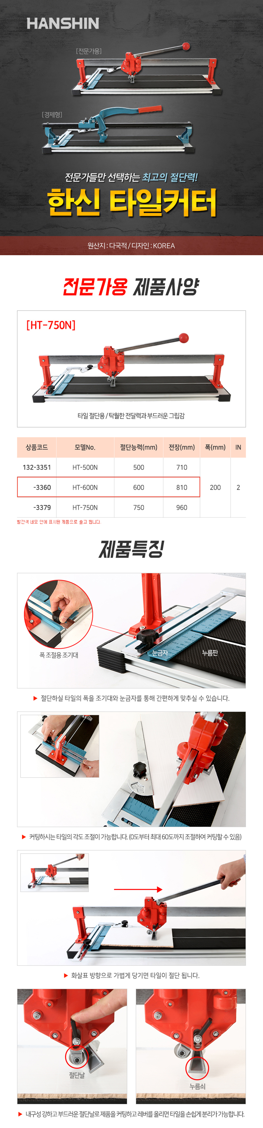 한신 타일커터(N) HT-600N 외날 (전문가용) , 타일캇타,타일컷터