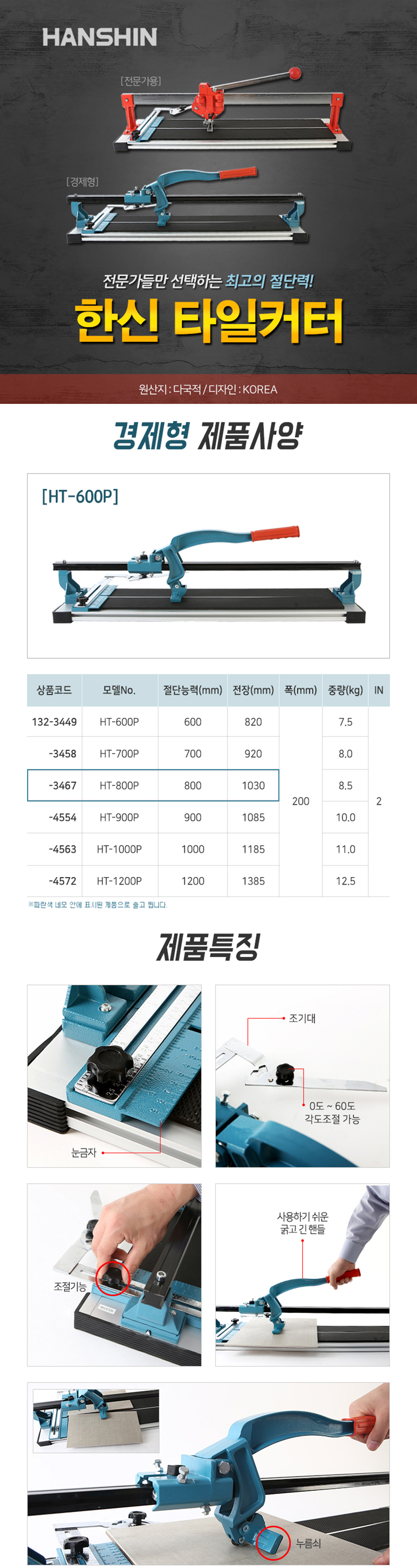한신 타일커터 (전문가형) 각도조절형, 타일캇타,타일컷터