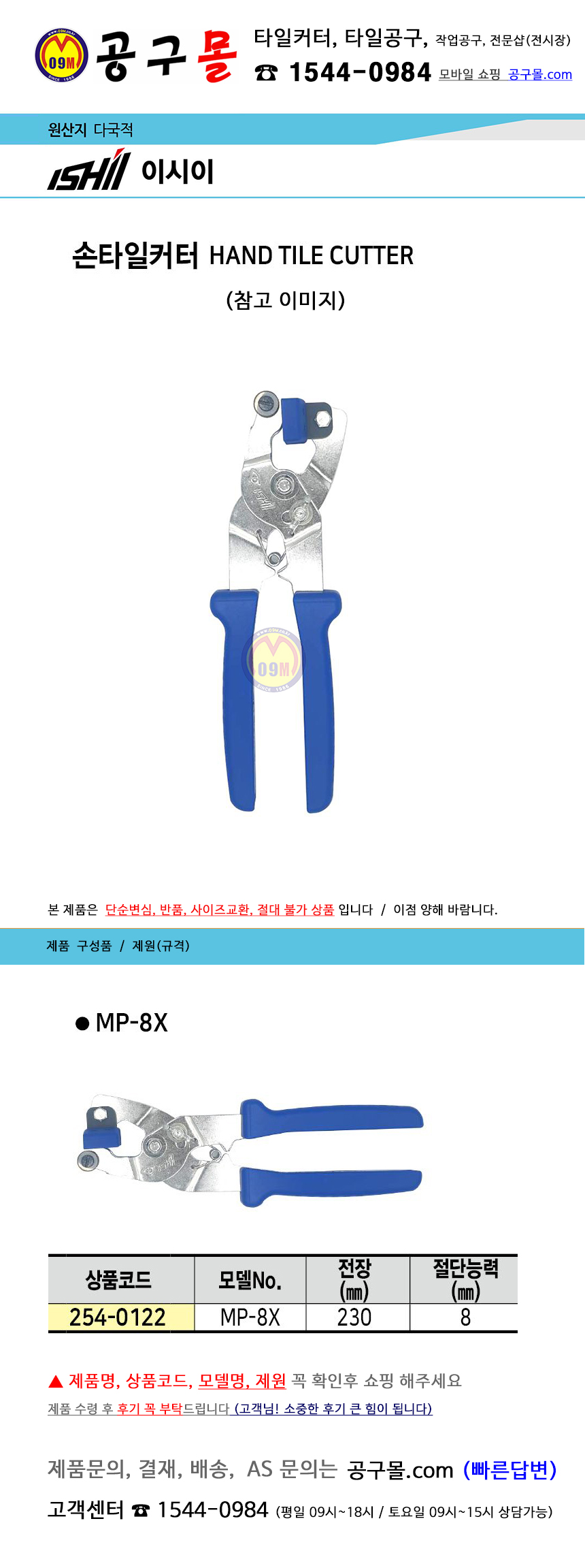 타일커터(핸드용) MP-8X 이시이,공구몰,타일공구, 타일절단기,254-0122