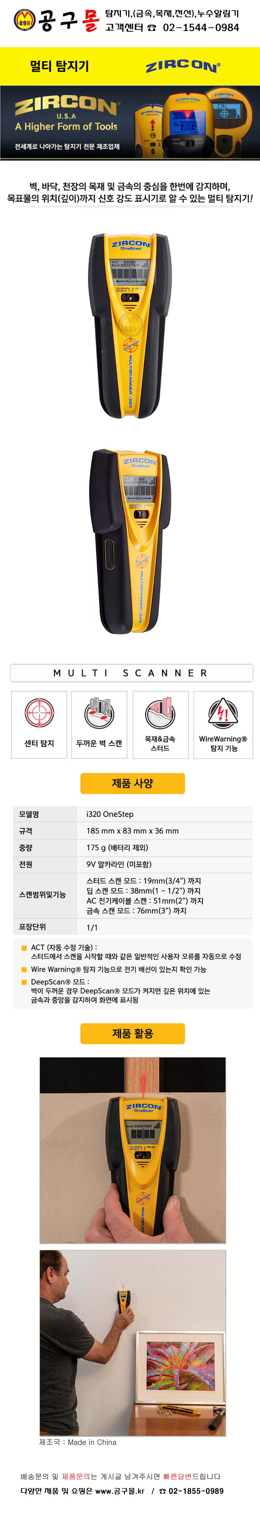 멀티탐지기 I320 OneStep ZIRCON, 지르콘, 금속탐지기, 목재탐지기, 전선탐지기, 멀티스캐너, 공구몰