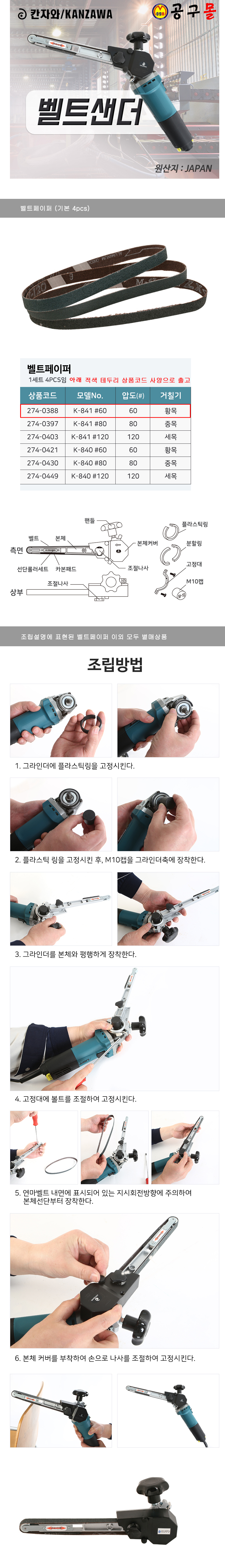밸트페이퍼(4PCS) K-841 입도60 (황목) 칸자와,KANZAWA,공구몰,목공구