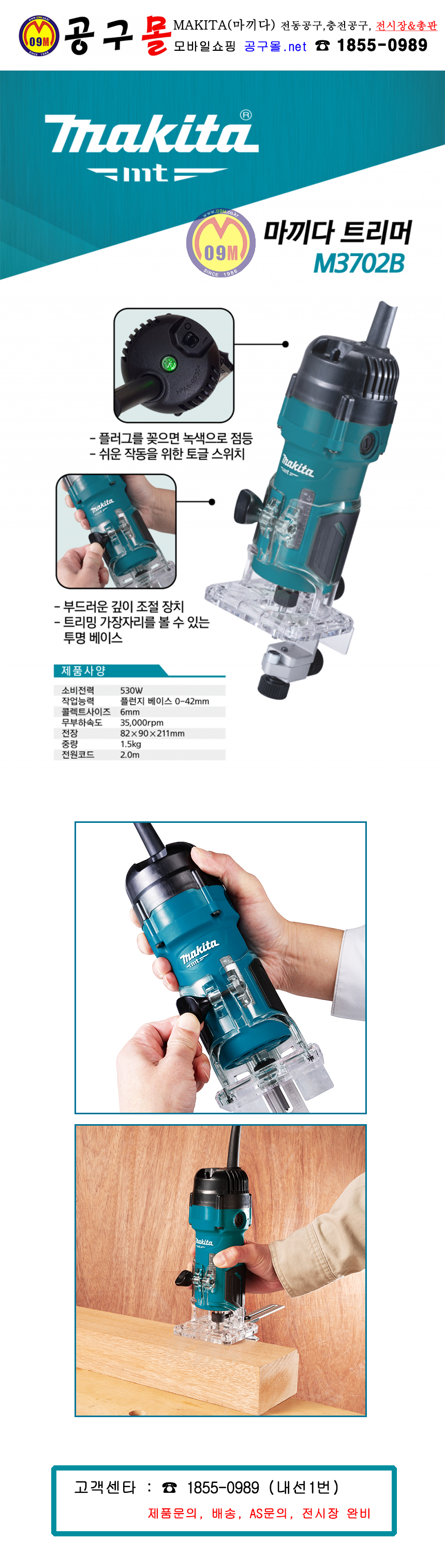 마끼다 트리머 M3702B 530W MAKITA, 라우터, 트리머, 루타기, 공구몰