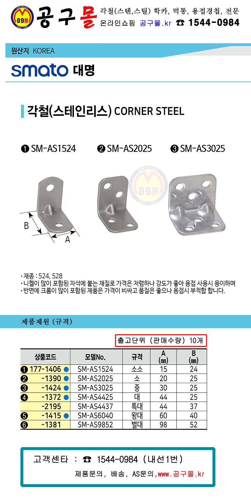 스마토대명 각철(스텐) SM-AS2025(소) 10개 SMATO 대명, 스텐코너, 스텐레스코너, 공구몰, 울산철물점, 177-1406