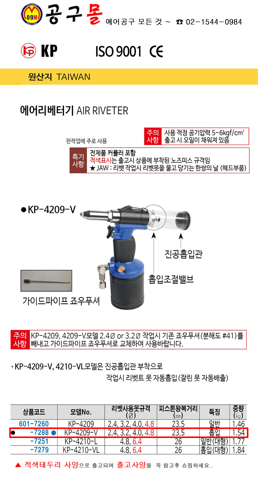 KP 에어리벳트건 KP-4209 (4.8) KP, 알루미늄리벳트건,에어리베트기,KP4209, 6017260