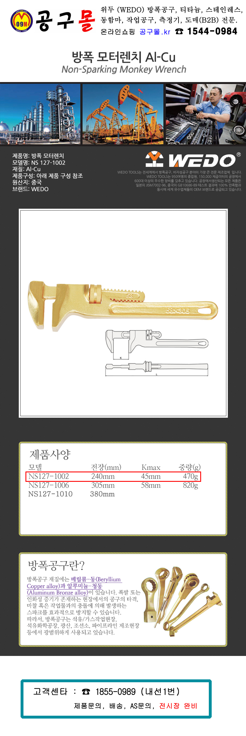 위두 방폭모터렌치(AL-CU) 240mm NS127-1002 WEDO, 공구몰, 방폭수공구, 작업공구, 800564254136