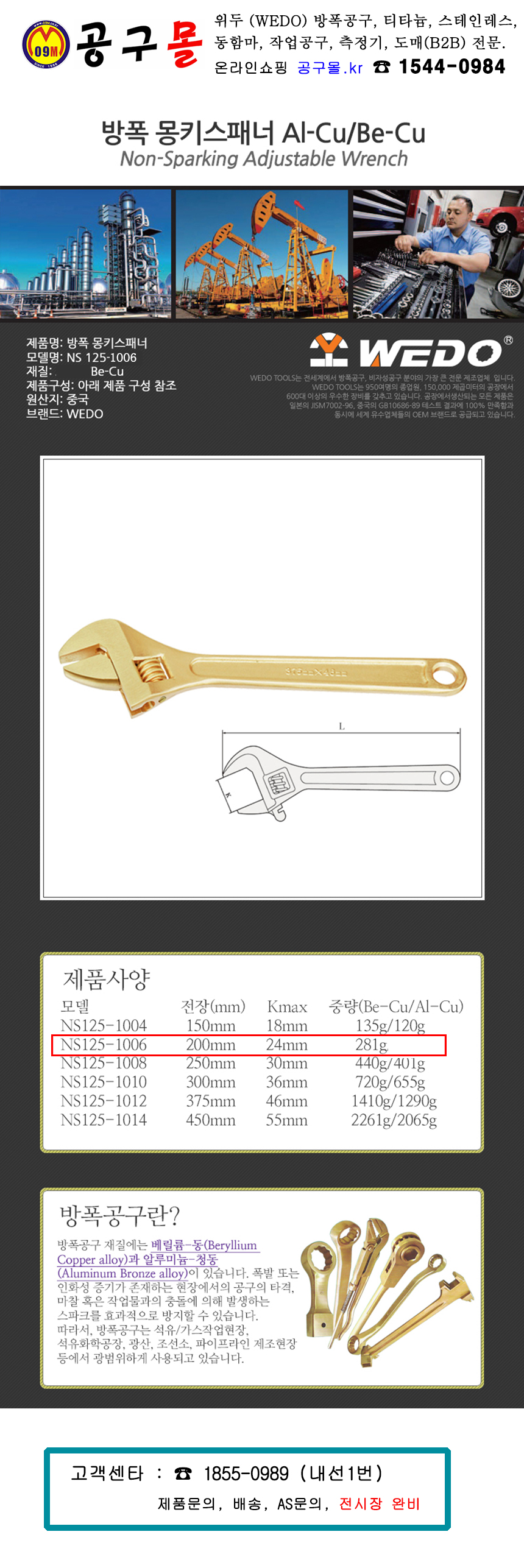 위두 방폭몽키(BE-CU) 200mm NS125-1006 WEDO, 공구몰, 방폭수공구, 작업공구, 800564254075