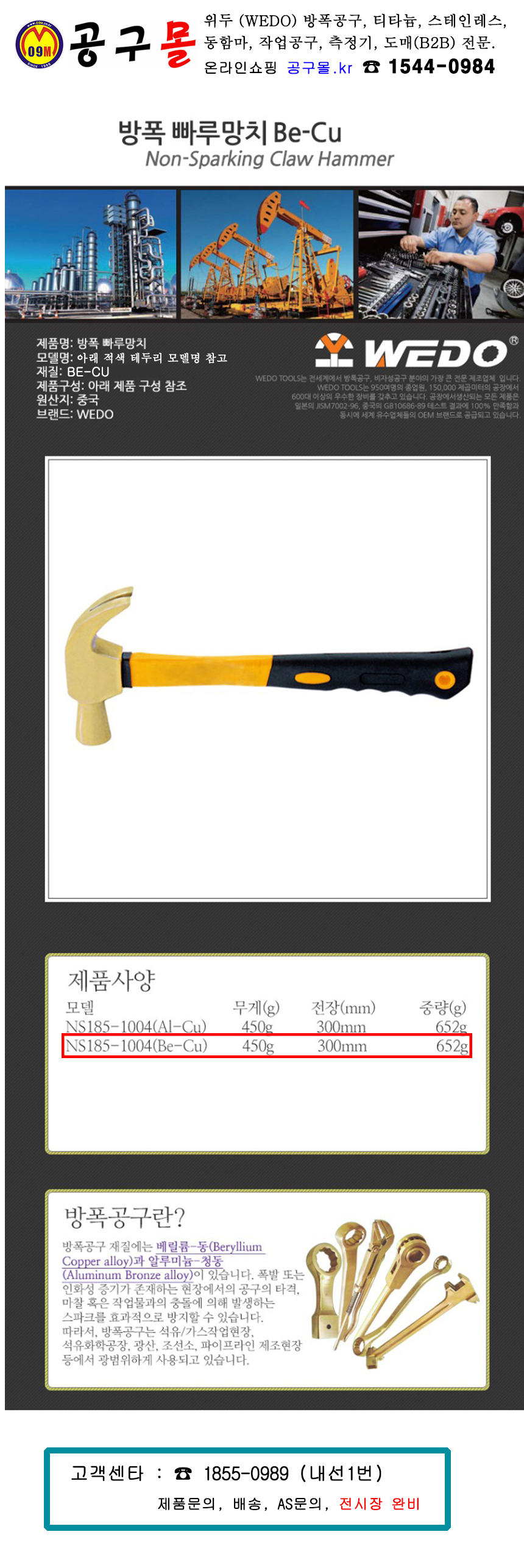 위두 방폭오함마 BE-CU 1.4Kg / 3LBS (NS191-1006) WEDO, 공구몰, 방폭수공구, 작업공구, 800564253801