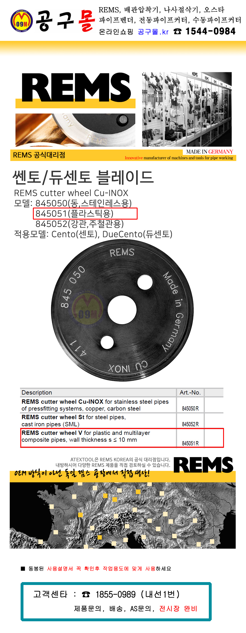 렘스 센토 커터날(강관/주철관) 845052 R (845004용) 블레이드, 듀센토용 REMS, 공구몰, 독일제조