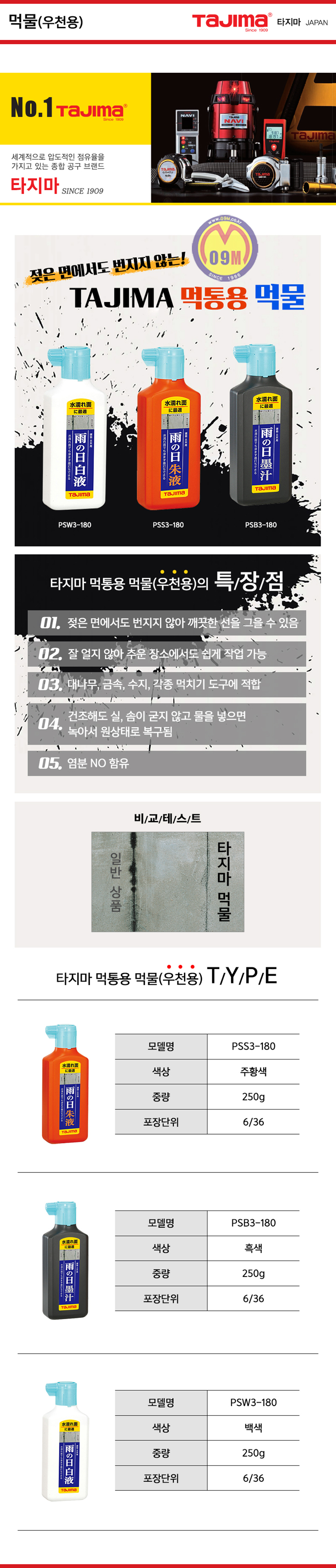 타지마 먹물(우천용) PSW3-180, (백색) TAJIMA, 먹통, 111111810105