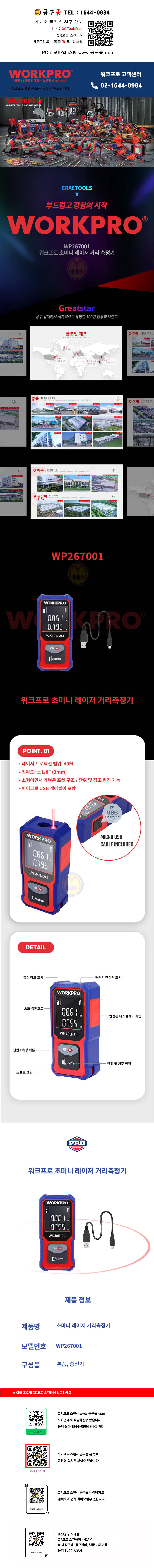 워크프로 레이저거리측정기 WP267001 40M 미니거리측정기 WORKPRO 공구몰