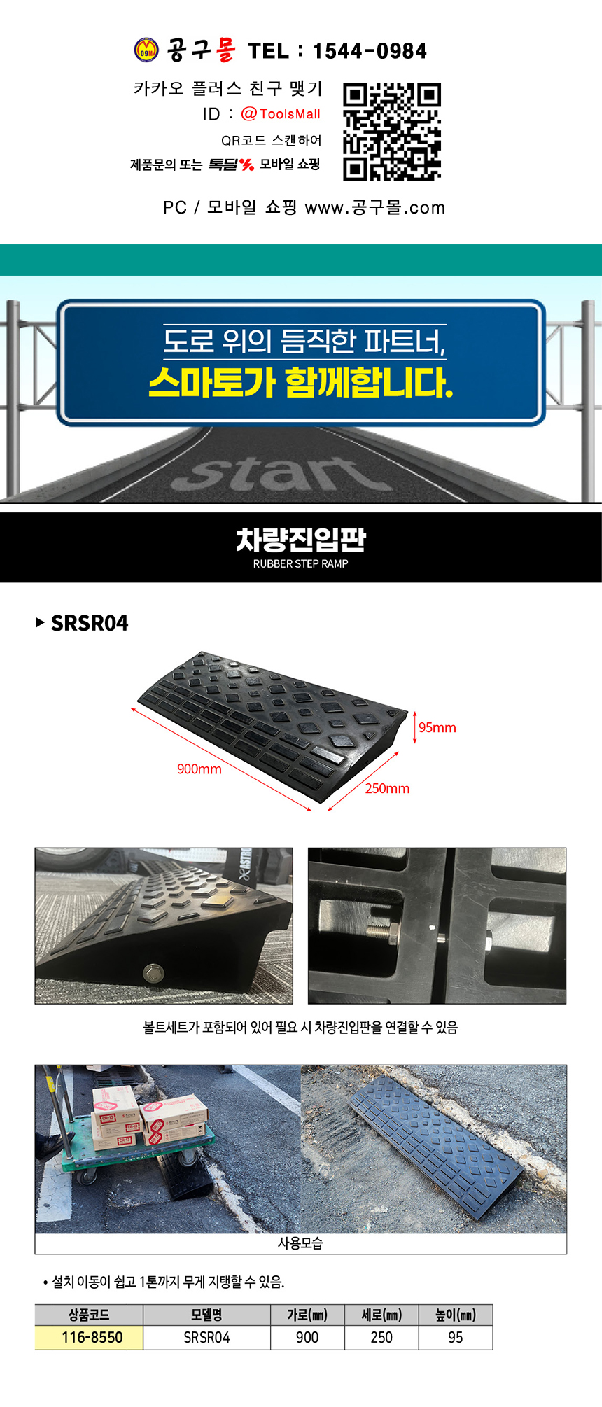 스마토 차량진입판 SRSR04 고무 smato 안전용품 도로용품 공구몰닷컴 116-8550