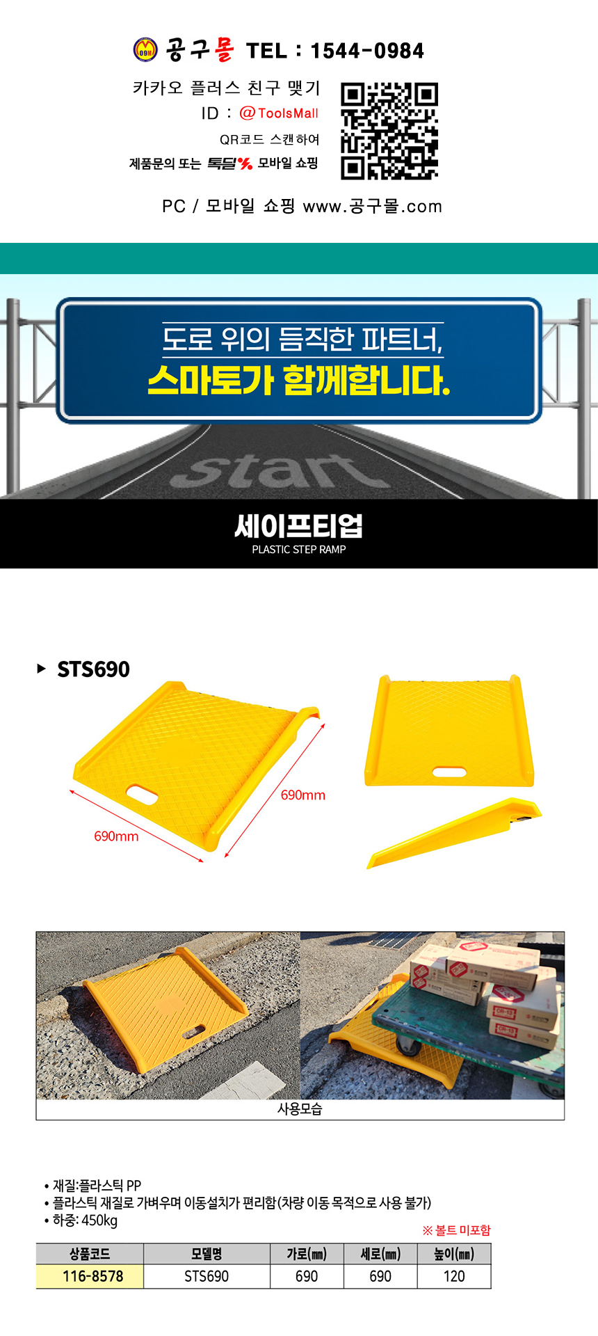 스마토 세이프티업 STS690 플라스틱 노란색 smato 안전용품 도로용품 116-8578