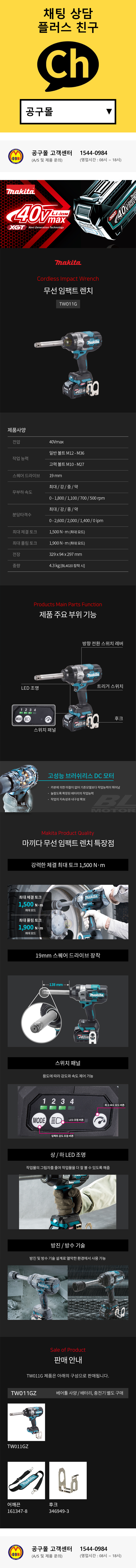 마끼다 40V 충전임팩트렌치 TW011G (40V-베어툴) 충전임팩 복스알