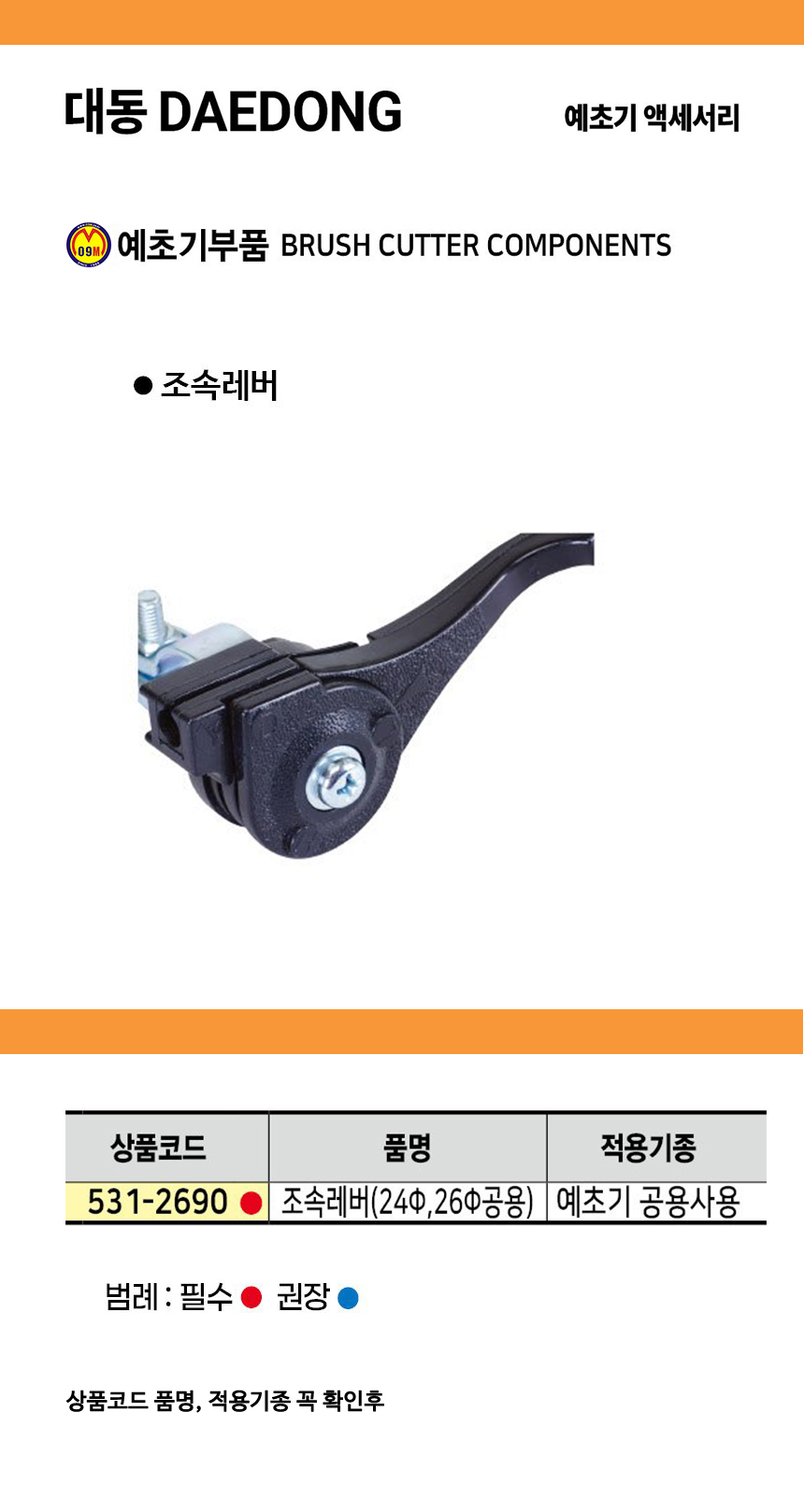 대동 조속레버(예초기공용) 24mm 26mm, 부속 공구몰 531-2690
