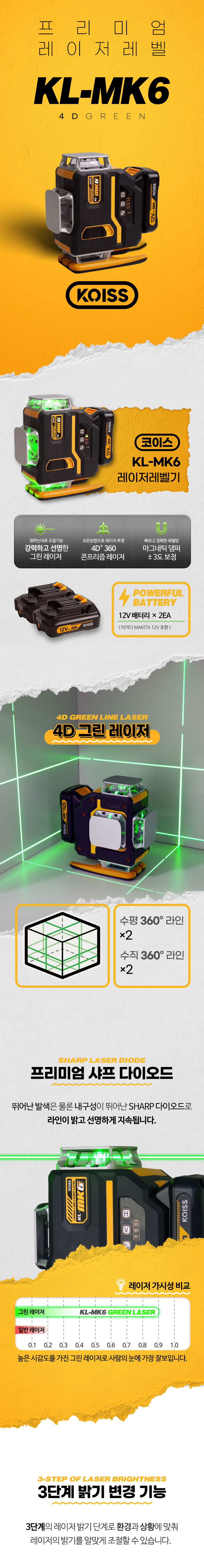 코이스 레이저수평(그린) KL-MK6 그린레벨기 KOISS 427-4056