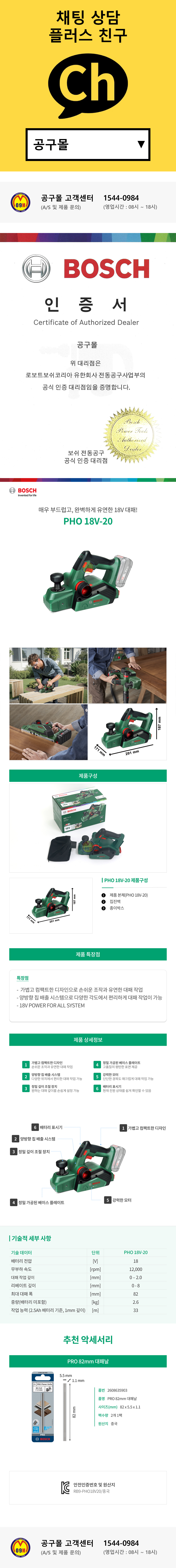 보쉬 충전대패 PHO18V-20 (18V-베어툴) 무선 대페 배터리 충전기 미포함