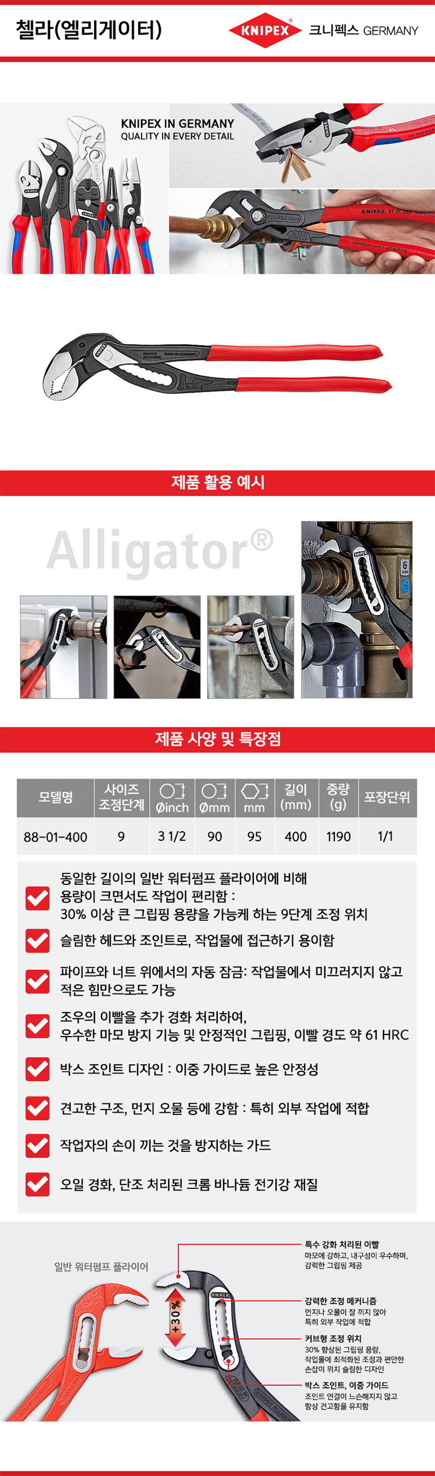 크니펙스 첼라(엘리게이터) 88-01-400 (400mm) Knipex 워터펌프플라이어 공구몰 101001020343
