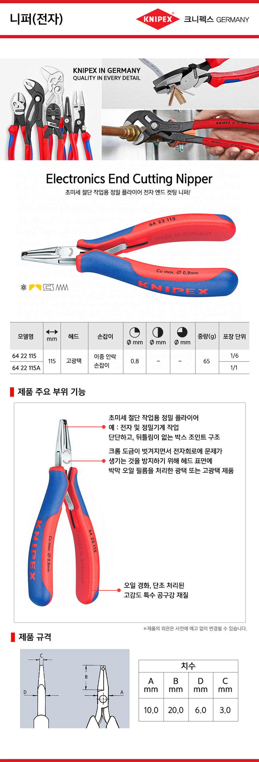 품절,크니펙스 니퍼(전자) 64-22-115A 전자니퍼 Knipex 독일공구, 공구몰추천 101001000029  품절