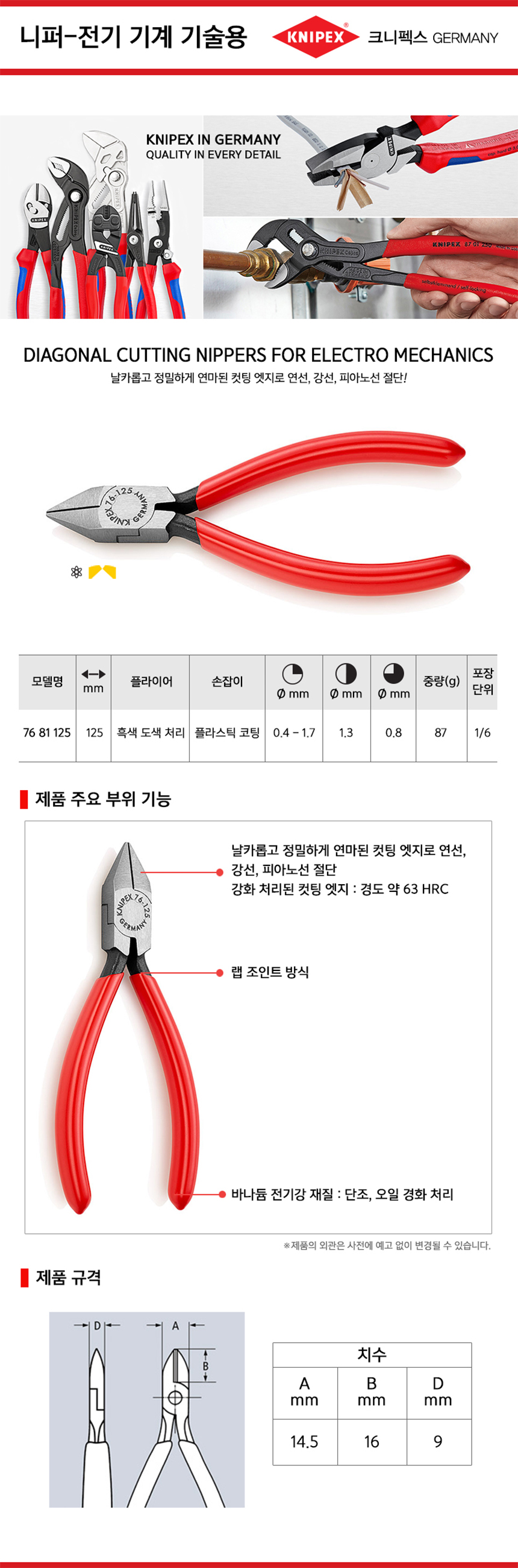크니펙스 니퍼(전자) 76-81-125 전자니퍼 Knipex 독일공구, 공구몰추천 101001000199