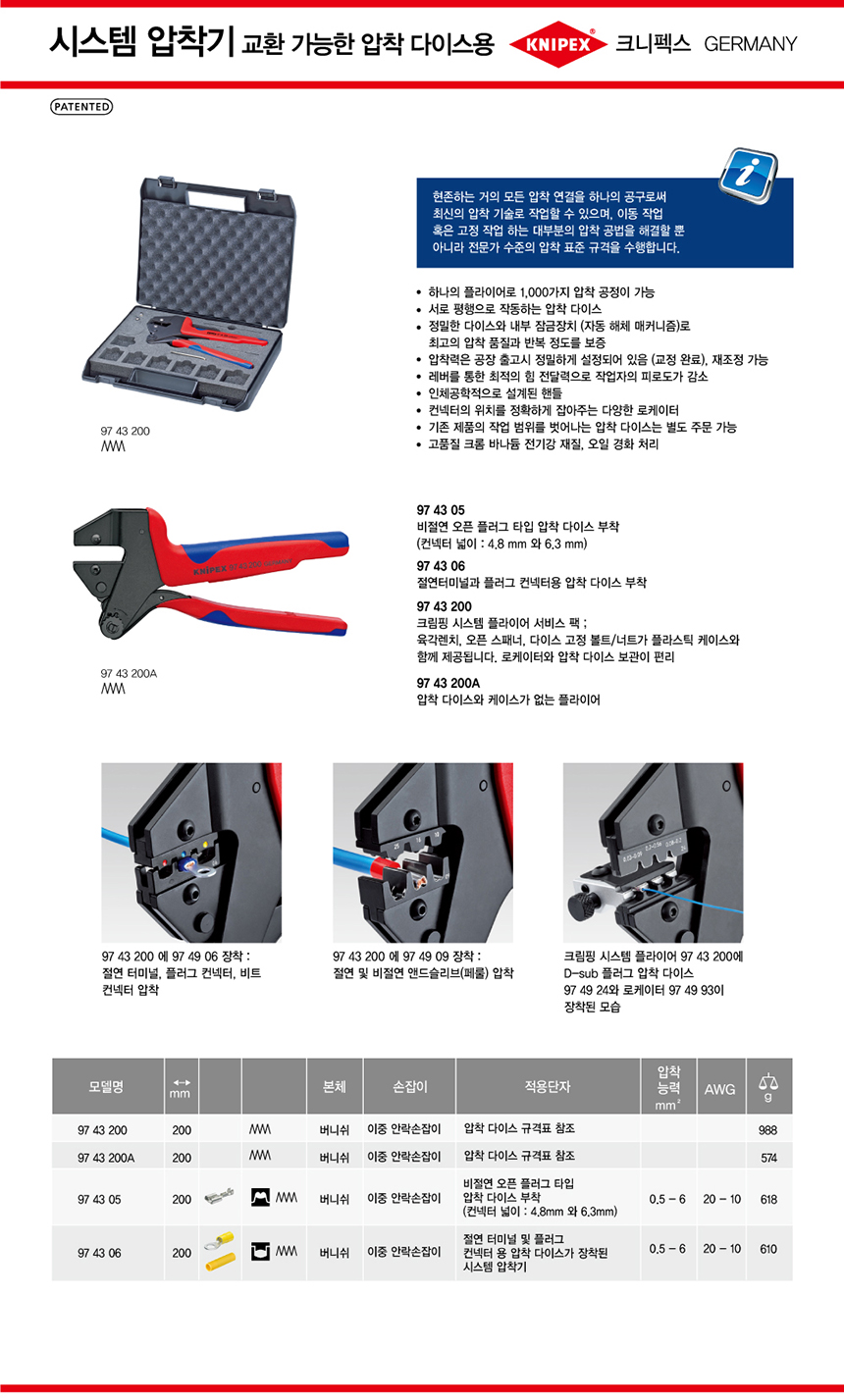 크니펙스 압착기 97-43-74 레버압착 케이블용 차폐플러그 Knipex 독일공구, 공구몰추천 101011370043