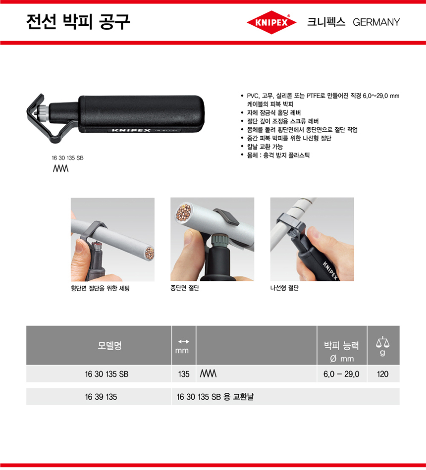 크니펙스 스트립퍼 16-40-150 (PE) 굵은케이블용 스트리퍼 전석박피공구