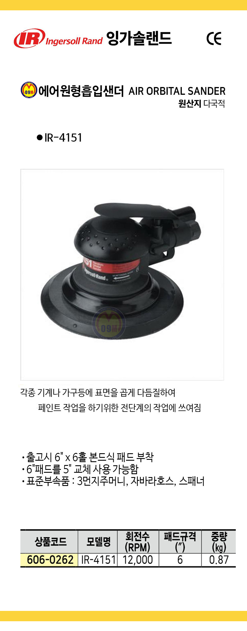 잉가솔랜드 에어원형흡입샌더 IR-4151(150mm) 에어흡입샌더, INGERSOLL RAND 공구몰 추천 C606-0262