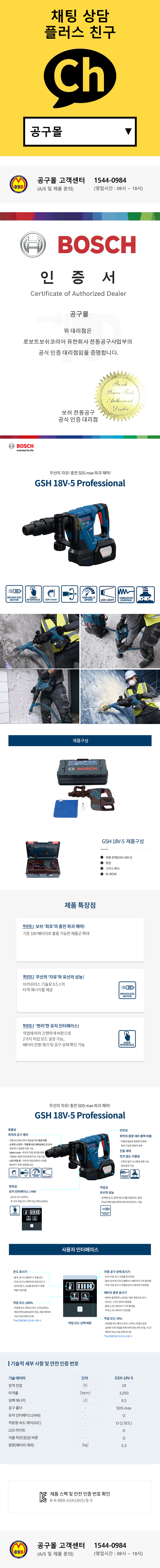 보쉬 충전 파괴해머 GSH18V-5 (18V-베어툴) SDS MAX 타입 파괴햄머
