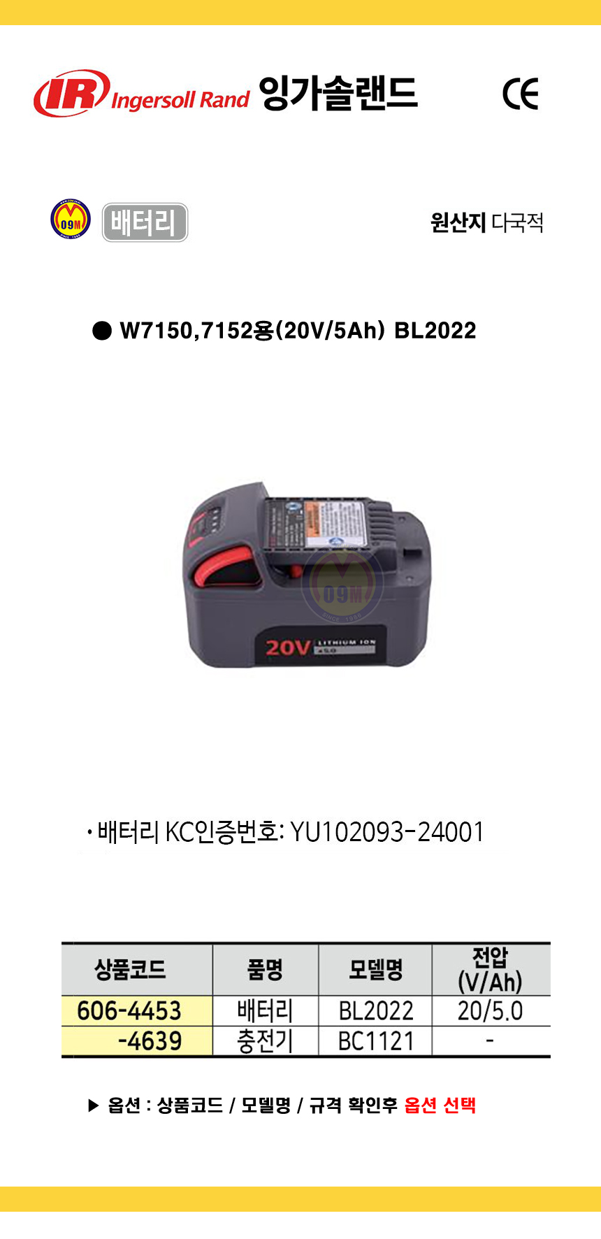 잉가솔랜드 배터리 W7150,7152용(20V/5Ah) BL2022 INGERSOLL RAND 공구몰 추천 C606-4453