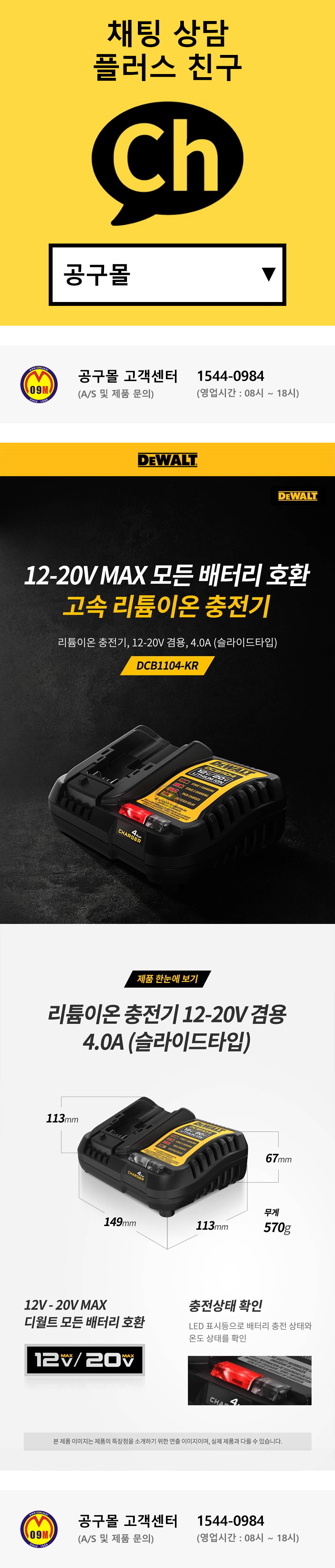 디월트 충전기 DCB1104 (12V-20V겸용) 5A충전 DEWALT, 공구몰