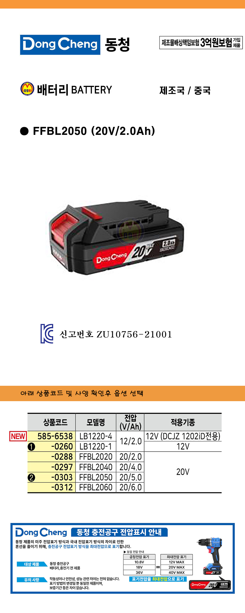 동청 배터리 FFBL2020 (20V-2.0Ah) DongCheng 공구몰 585-0288