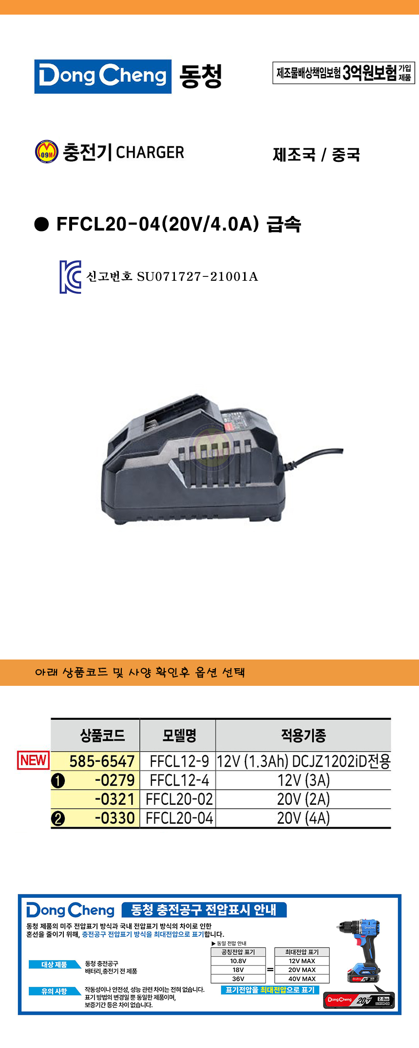 동청 충전기 FFCL20-04 (20V/4.0A) 급속 DongCheng 공구몰 585-0330