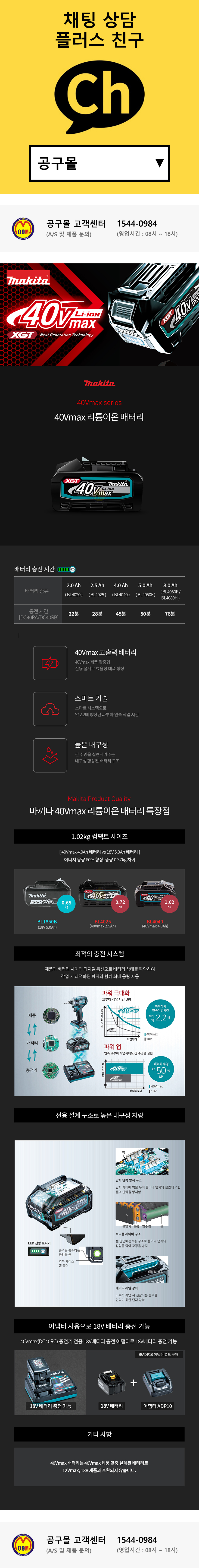 마끼다 40V 8AH 배터리 BL4080H (최대출력 3.8kW) 1913S8-7