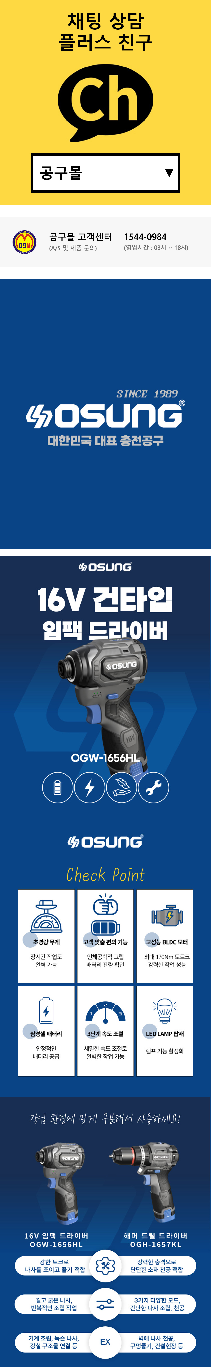 오성 16V 충전해머드릴드라이버 OGH-1657KL (16V-세트) 충전드릴 드라이버