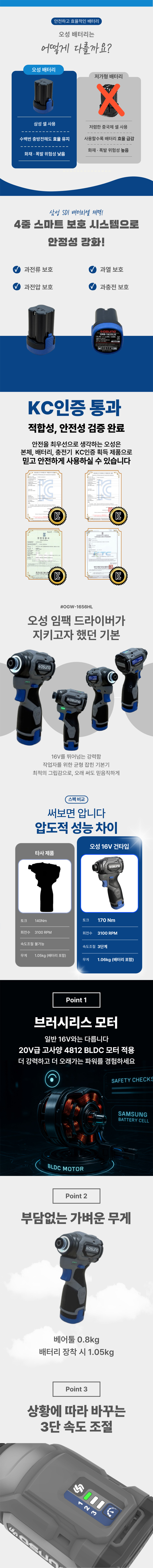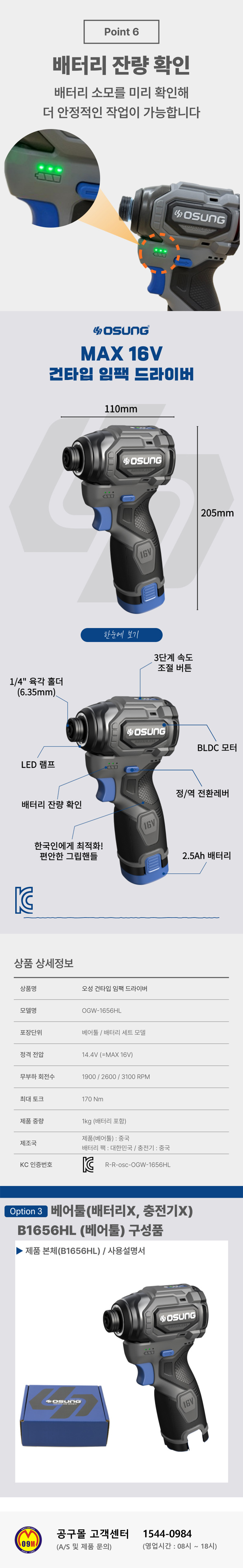 오성 16V 충전임팩드라이버 OGW-1656HL (16V-세트) 충전임팩 건타입