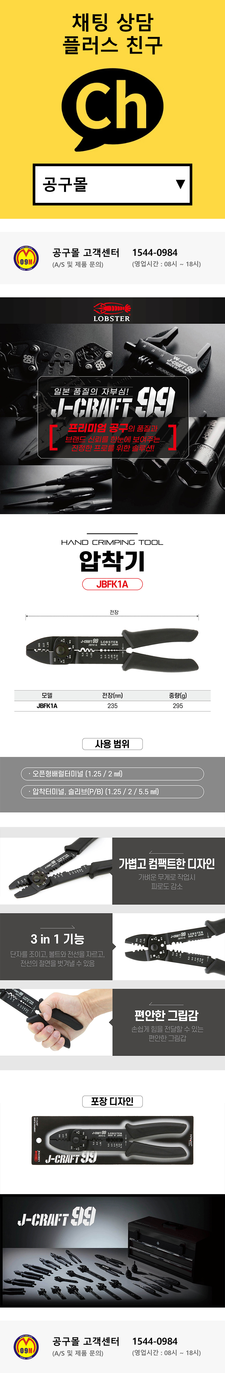로보스터 CRAFT99 블랙압착플라이어 JBFK-1A 와이어커터 압착 볼트절단
