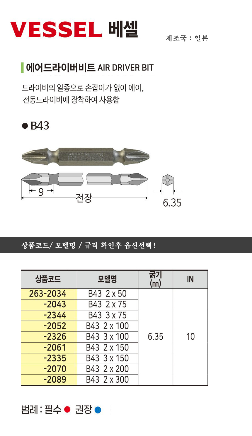 베셀 에어드라이버빗트 B43x2x300(6.35x300mm) VESSEL