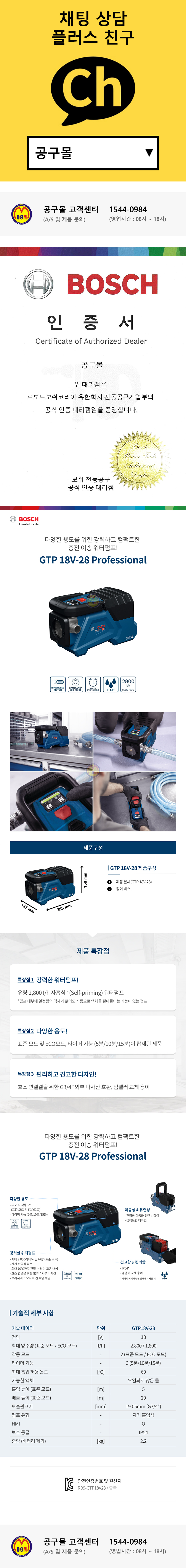 보쉬 충전이송 워터펌프 GTP18V-28 (18V-베어툴) 수중펌프