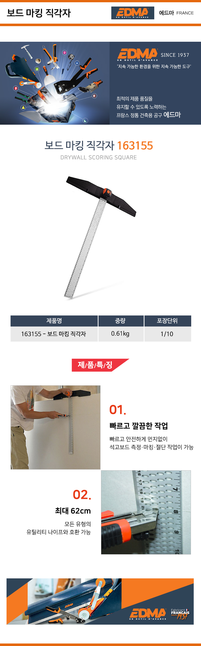 EDMA 석고보드 마킹직각자 163155 석고보드커팅, 에드마 공구몰