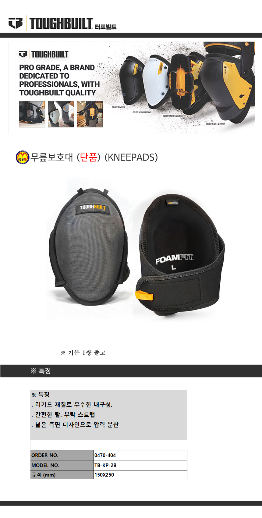 터프빌트 무릎보호대(단품) TB-KP-2B (1쌍) 기본 / 탈부착불가 (TOUGH BUILT)0477404