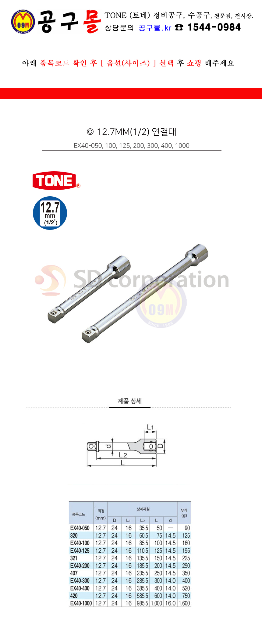 TONE(토네) 1/2 연결대 EX40-050, 320, EX40-100,EX40-125, 321, 공구몰닷컴
