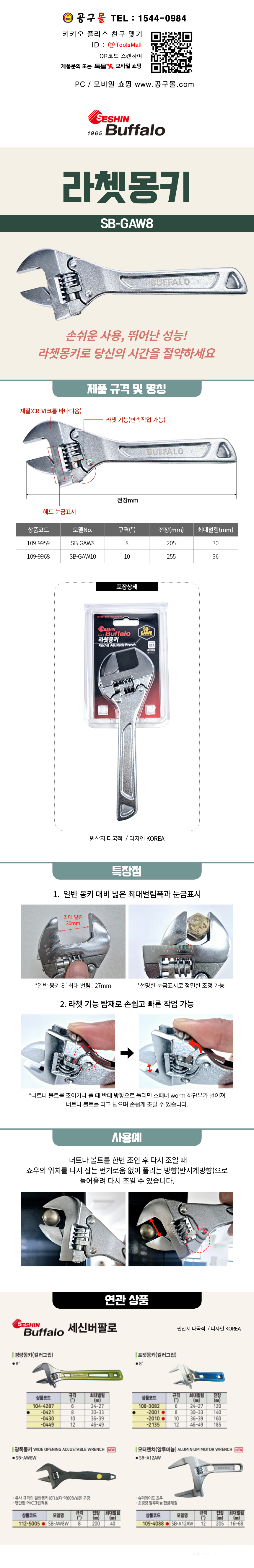세신 라쳇몽키 SB-GAW8/ SB-GAW10/ 몽키스패너, SESHIN BUFFALO, 세신공구, 버팔로 공구몰 109-9959