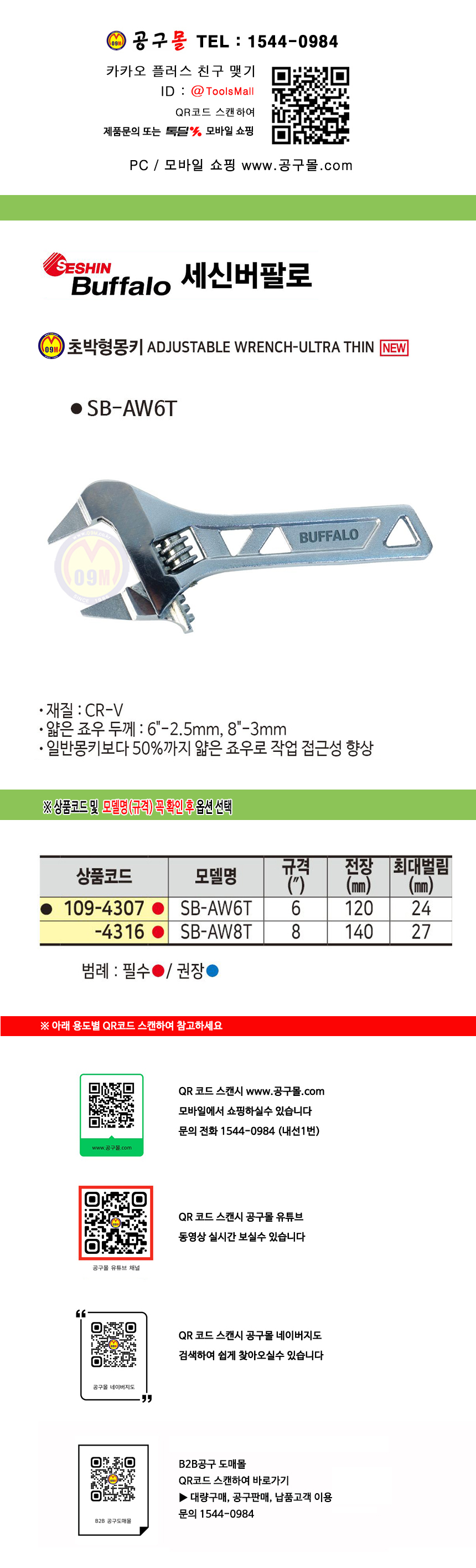 세신 초박형몽키 SB-AW6T/ SB-AW8T/ 몽키스패너, SESHIN BUFFALO, 세신공구, 버팔로 공구몰 109-4307