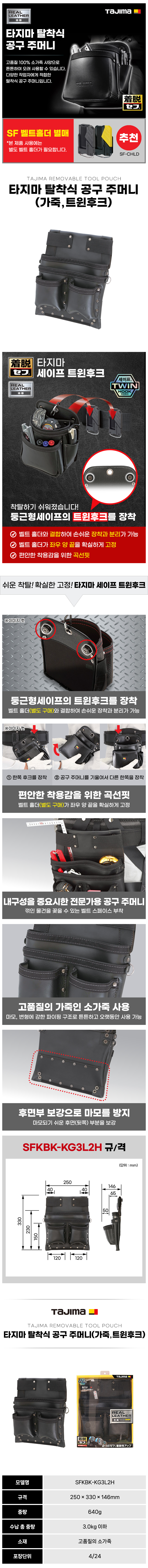 타지마 공구집(가죽,트윈후크) SFKBK-2S2H/ 2M2H/ KG3L2H, 전공주머니, 파우치, TAJIMA 111101689129