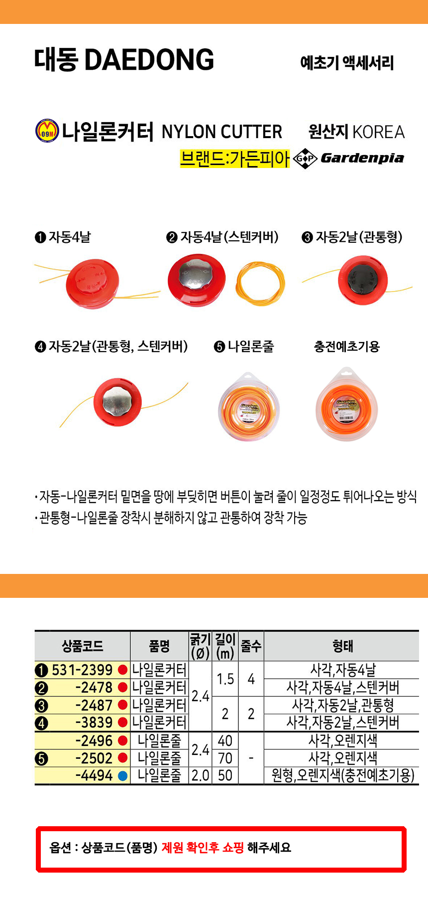 대동 나일론커터(예초기날) 가든피아, 충전예초기날, 예초기부품, 공구몰 531-2496